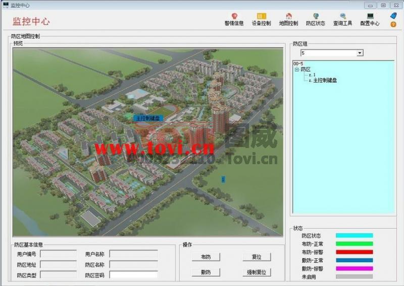 3.多級電子地圖顯示所有的用戶狀態,報警情況,用戶資料等都可以通過地圖顯示和控制軟件還提供電子地圖引入工具,允許工程人員自行安裝所需的電子地圖