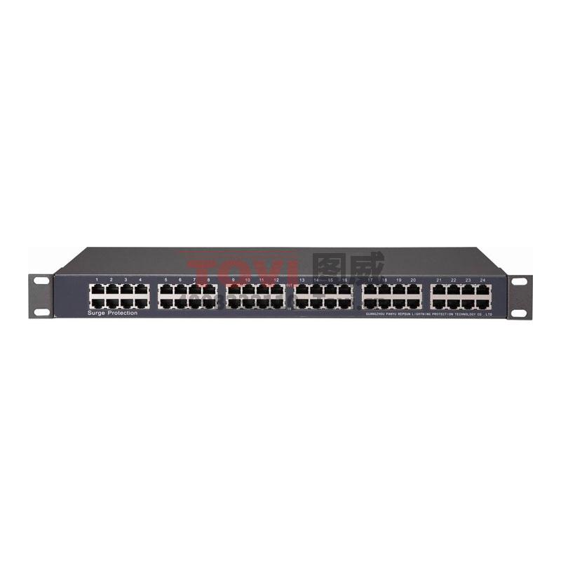 產品為機架式一體化設計,保護端口數有6口、8口、12口、16口和24口。分有4線(1/2,3/6)和8線(1~8)保護,接口方式為RJ45,數據傳輸速率100Mbps。